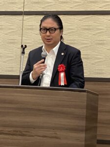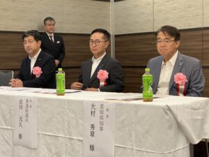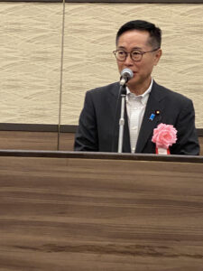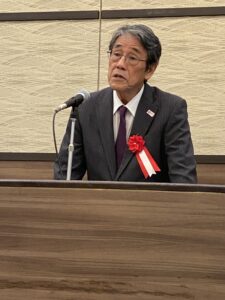鹿島ブロック協会長が主催者挨拶し、大村秀章・愛知県知事、里見隆治・参議院議員、古川元久・衆議院議員が来賓の挨拶をしました。。